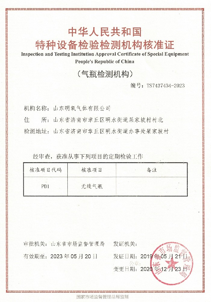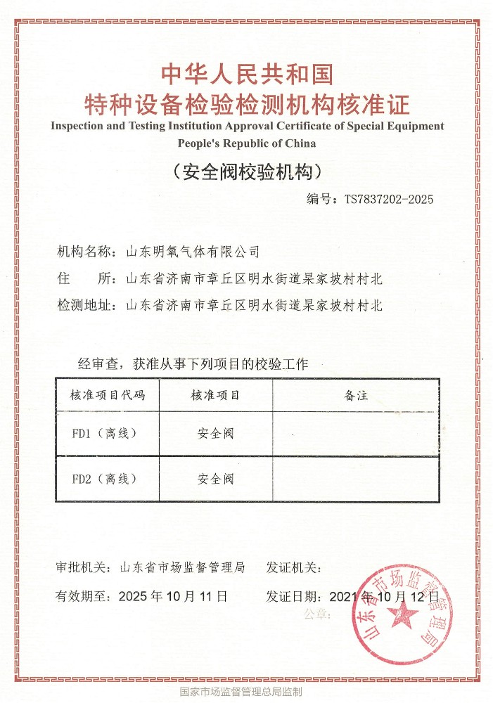 ??? 山東明氧氣體有限公司的前身為始建于1993年的章丘市明水氧氣廠,2020年12月企業(yè)由民營(yíng)獨(dú)資轉(zhuǎn)型升級(jí)為山東明氧氣體有限公司,企業(yè)進(jìn)入新的發(fā)展階段。公司位于山東省濟(jì)南市章丘區(qū)明水街道杲家坡村村北,占地面積4000平方米,注冊(cè)資金500萬(wàn)元,固定資產(chǎn)投資3000萬(wàn)元,主要經(jīng)營(yíng)項(xiàng)目為醫(yī)用氧氣、工業(yè)氧氣、氮?dú)狻⒏呒兊獨(dú)狻鍤狻⒏呒儦鍤狻⒏呒兒狻⒍趸肌⒒旌蠚怏w等各種工業(yè)氣體、高純氣體、混合氣體的充裝銷售、各類氣瓶的銷售、安全閥校驗(yàn)、鋼質(zhì)無縫氣瓶的檢驗(yàn)等。